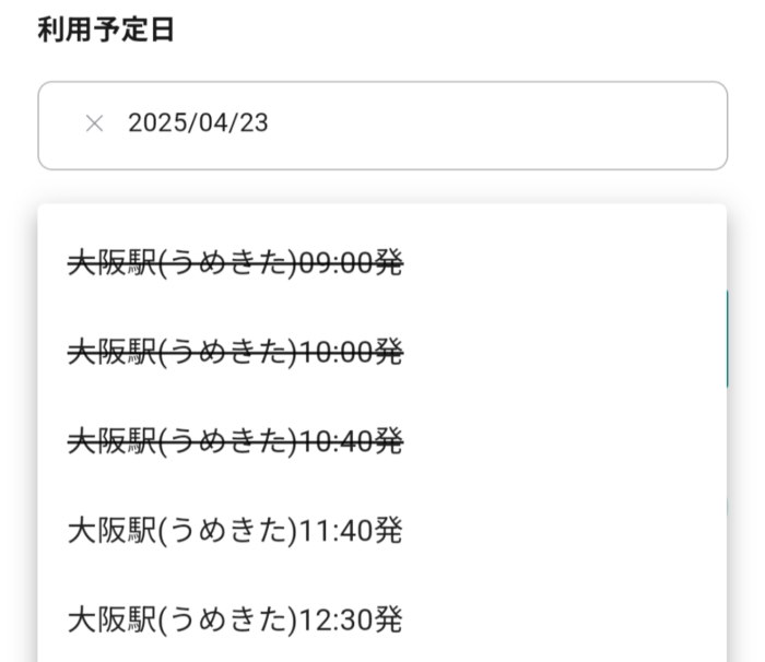新大阪駅や大阪駅、なんば駅、天王寺駅などの主要駅からはバスが利用できます。予約は「KANSAI MaaS」というアプリから行います。